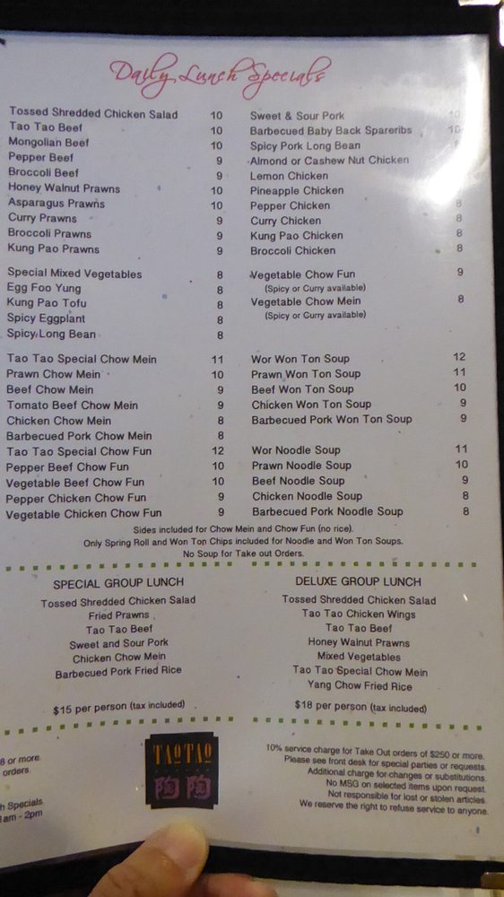 The menu highlights include Tao Tao Beef, a favorit among many, renowned for its rich flavor and perfect execution, paired beautifully with their celebrated Chinese chicken salad. For those seeking variety, options like Mongolian beef and honey walnut prawns await, ensuring every visit presents a new culinary adventure.
